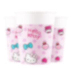 8 stk. papkopper med et flot motiv af Hello Kitty og andre små fine detaljer. Sæt disse frem med tilhørende tallerkner og servietter for en stilfuld, komplet borddækning. Krusene er cirka 9 cm høje og rummer cirka 200 ml. Skålene er lavet af FSC-mærket papir.