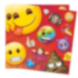 16 stk. servietter med farverige og sjove motiver af Emojis på en rød baggrund. Servietterne er i 2 lag og er ca. 33 x 33 cm.