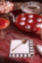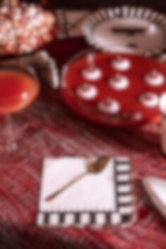 Skab en elegant Halloweenborddækning med disse stilfulde papirservietter. Den dekorative kant har sorte striber, der afsluttes med en guldfolie, som giver en luksuriøs kontrast til den bløde baggrundsfarve. Perfekte at kombinere med tallerkener og krus fra samme serie.