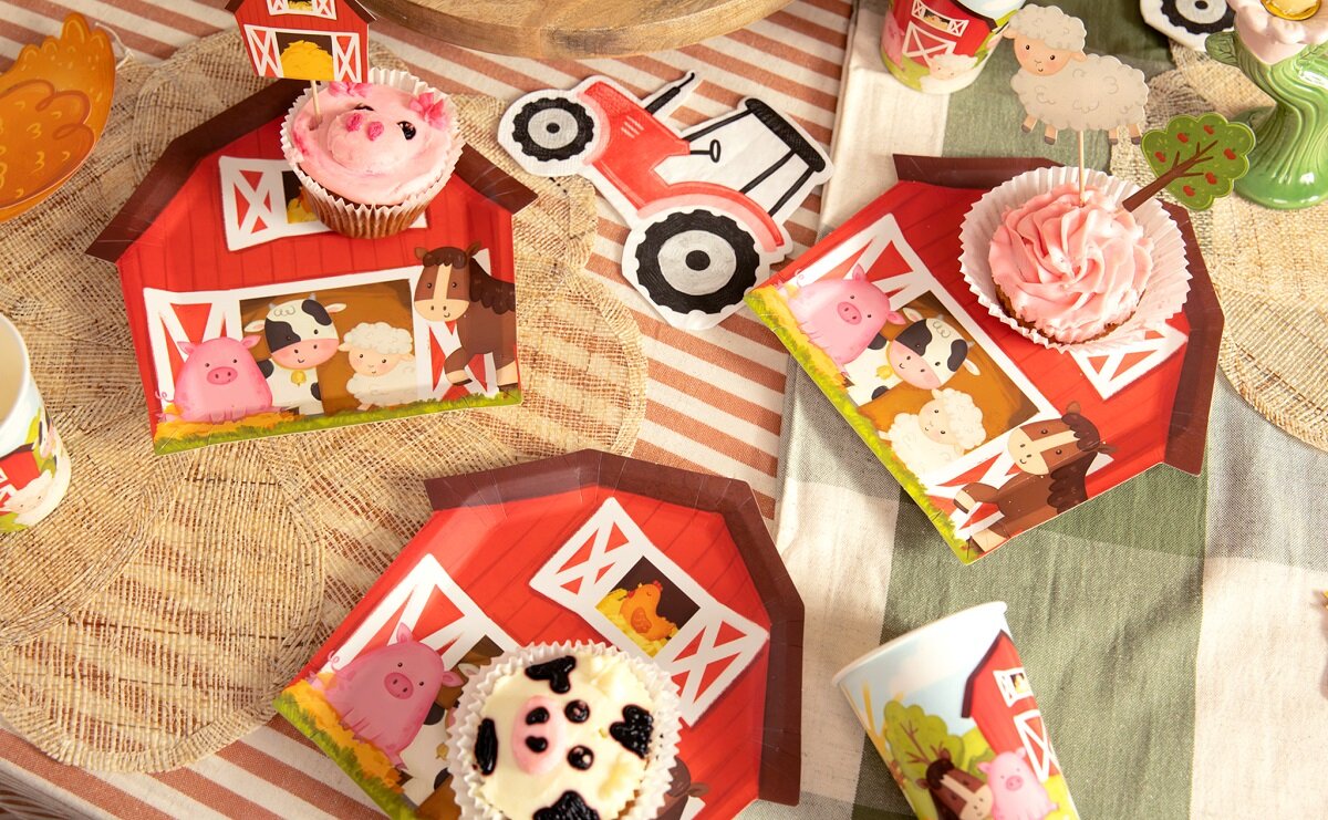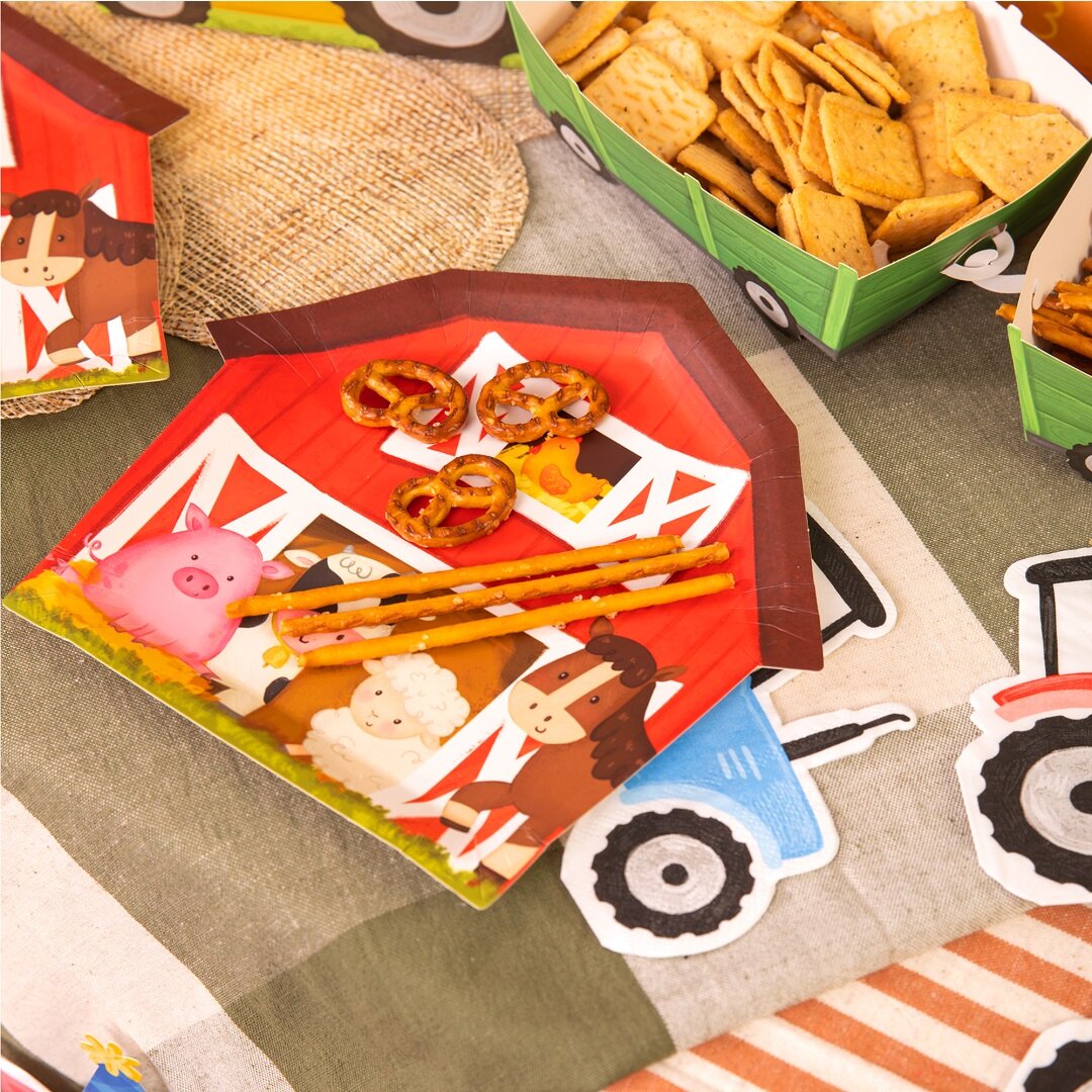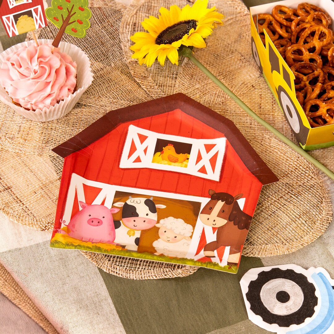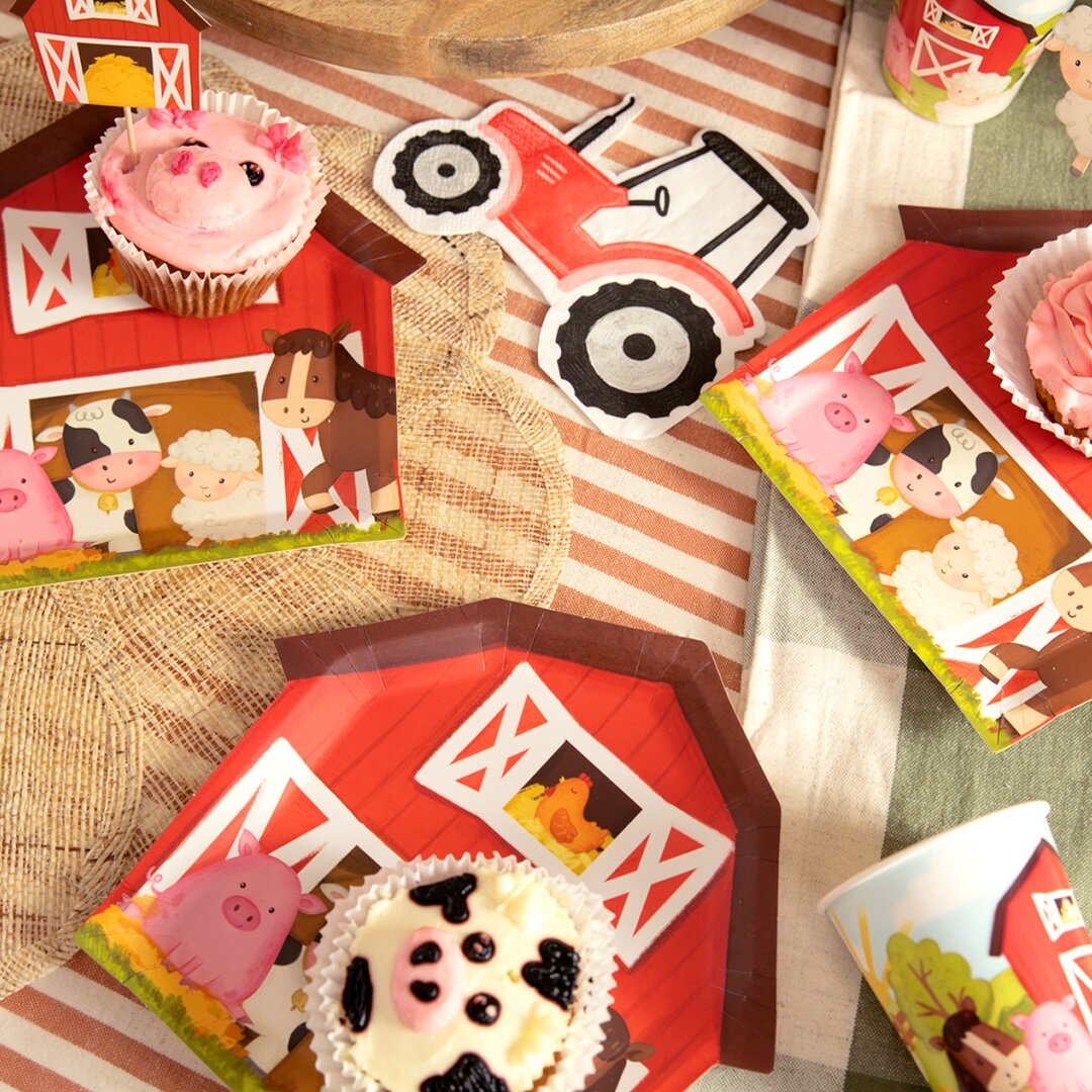De passer perfekt til fødselsdagsfest med bondegårdstema og er fine at servere kage, snacks og andre lækkerier på. Tallerkenerne måler 20 x 20 cm.