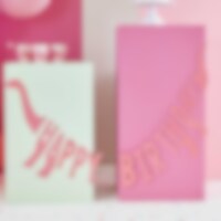 8 stk. smukke papirtallerkner med lyserøde kanter og motiver af dinosaurer i lyserøde nuancer i midten. Tallerkenerne er omkring 24 cm i diameter. De kan også bruges som serveringsfad til den sjove dinosaurfest.