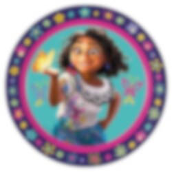 8 stk. tallerkener med smukke Mirabel fra Disney filmen Encanto. Tallerkenerne er lavet af pap og er 23 cm i diameter. Inviter dine venner på en sjov fødselsdagsfest, og sæt kage og småkager på deres tallerkener.