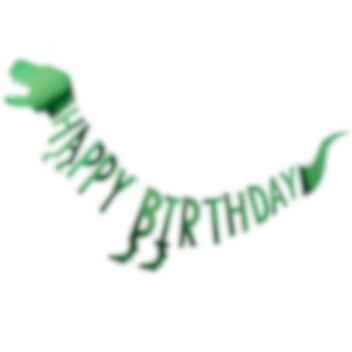 Sej guirlande af grønt folie med teksten "Happy Birthday" og motiver af forskellige dele af dinosaureren. Hæng den op på væggen når du holder dinosaurfest. Guirlanden er ca. 2 meter lang.