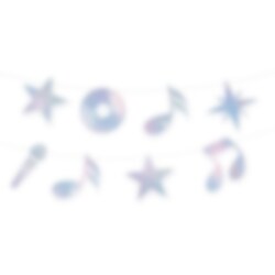 Skab en skinnende baggrund til festen med denne festlige guirlande i disco-stil. Med stjerner, noder, spejlkugler og mikrofoner i holografisk glans er den perfekt til væggen, bordet eller et lille fotoområde. Guirlanden er 110 cm lang, og dekorationerne måler cirka 12-14 cm, lige til at sætte den rette stemning fra start.