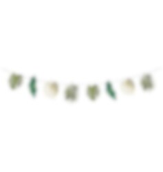 Dekorationsguirlande med tropiske blade, der måler 3 meter. Perfekt til at skabe en jungle- eller safarifølelse til festen. Farverne er blandet og giver en livlig touch til dekorationen.