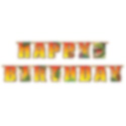 Denne Happy Birthday-guirlande af pap er en spændende dekoration for alle dinosaur elskere. Med en længde på 220 cm er denne seje guirlande perfekt til at skabe en eventyrlig atmosfære på børnefødselsdagen.