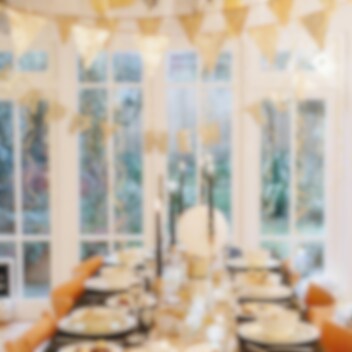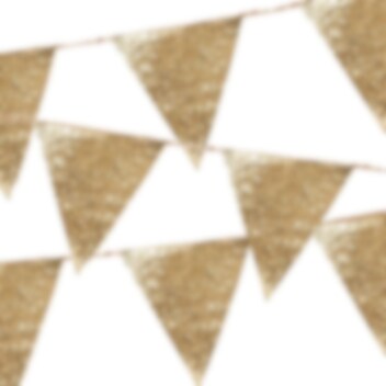 Skab en atmosfære af fest og glamour med denne luksuriøse guldglitrende guirlande. Med sin længde på 3 meter tilføjer den en touch af elegance til enhver begivenhed. Hver vimpel er 16 cm høj.