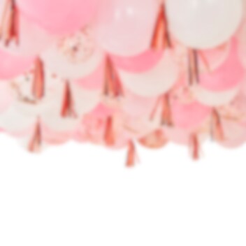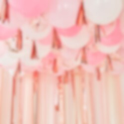 160 x rosa og hvide balloner samt balloner med rosaguld konfetti i størrelserne 30,48 og 12,7 cm i diameter.