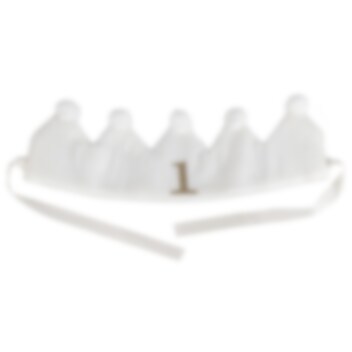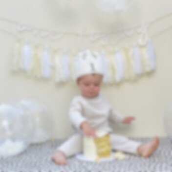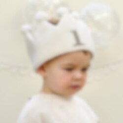 Fejr din lille 1-årings fødselsdag med stil med denne søde stofkrone! Den cremefarvede krone har pom pom-dekorationer og bindebånd af grosgrain. Perfekt til at skabe en mindeværdig første fødselsdagsfejring.