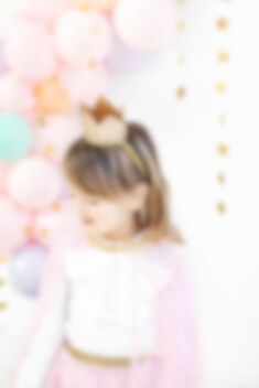 Prinsessekrone, der glitrer i en flot guld. Et dejligt tilbehør at bære til fester med prinsessetema. Kronen er ca. 8,5 cm i diameter og er lavet af 100% polyester.