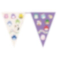 Farverig flagguirlande af papir med motiv af karaktererne fra Squishmallows. En fin dekoration for at skabe en sjov stemning til børnefødselsdagen! Guirlanden er cirka 2,3 meter lang og hver vimpel er cirka 24,5 cm høj.
