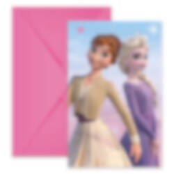 6 stk. stilfulde invitationer med motiver af Elsa og Anna fra filmen Frost 2.