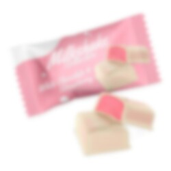 Milkshake White Choco & Strawberry er stykker af jordbærmassa overtrukket med hvid chokolade. Vægt 2 kilo.