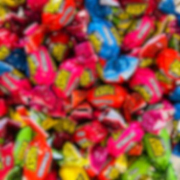 Ingredienser: Sukker, glukosesirup, fuldt hydreret vegetabilsk fedt (palm), surhedsregulerende middel (citronsyre), E500ii), aromaer (æble, jordbær, citron, cola, hindbær, vandmelon), farvestoffer (E162, E150a, E163, E100, E141, E133), fugtighedsbevarende middel (sorbitol), oksegelatine, emulgatorer (mono- og diglycerider af fedtsyrer, SOJA-lecithin), salt. Ikke egnet til børn under 4 år. Kan indeholde: NØDDER, HVEDE (GLUTEN), ÆG, MÆLK.