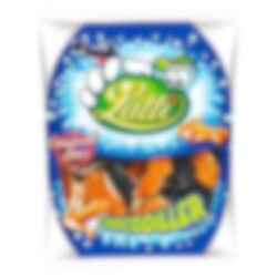 Lutti Krokodiller er en geléslik formet som krokodiller med blandede frugtsmag. Vægt 130 gram.