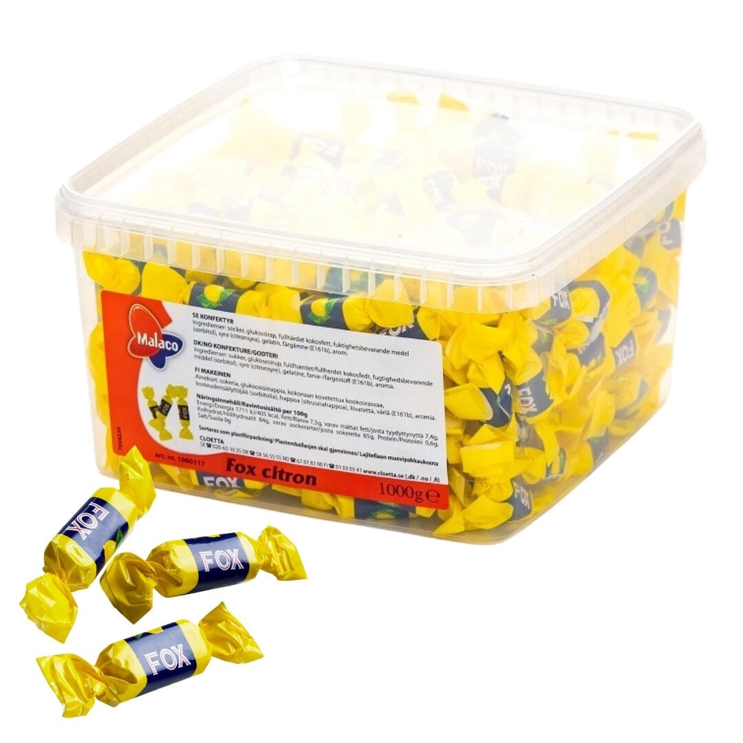 Malaco Fox Citron er lækre frugtkarameller med en frisk smag af citron.