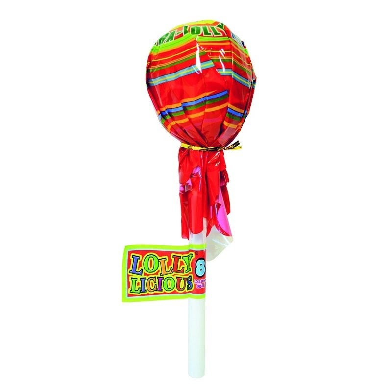 Denne megastore slikkepind med en imponerende længde på 33 cm er en sjov og smagfuld slikoplevelse, der indeholder 8 små slikkepinde med frugtsmag indeni med en samlet vægt på 70 gram.