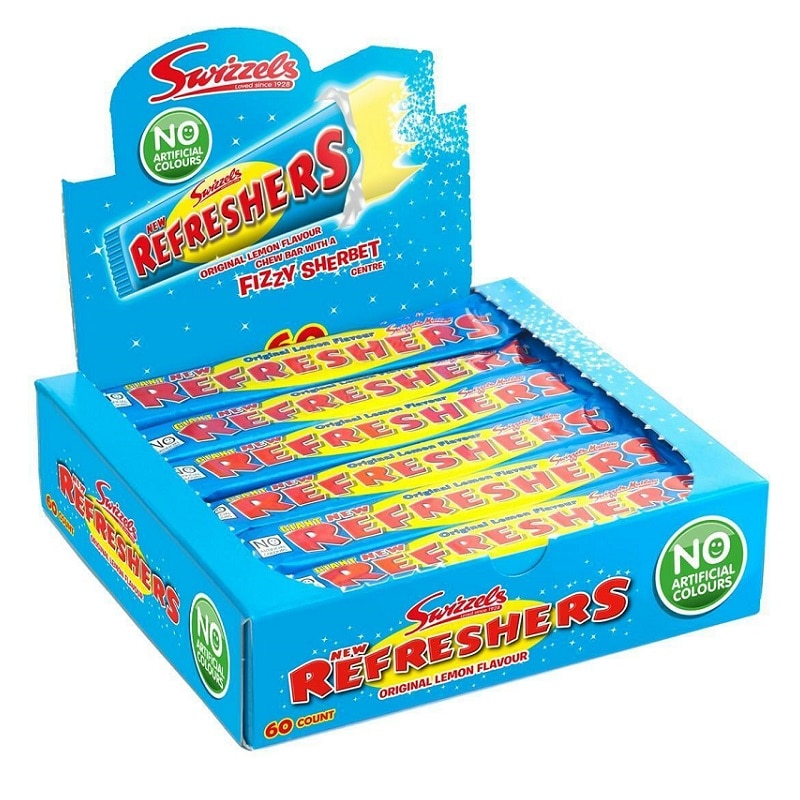 Retro-slik i form af Refreshers med pulver med citronsmag indeni.