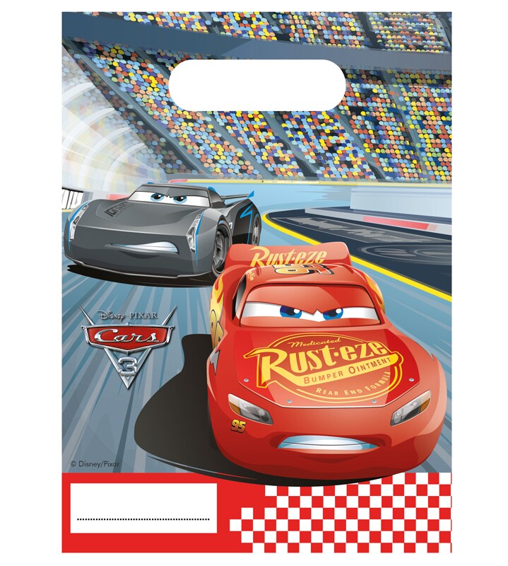 6 stk. slikposer med sejt motiv af ærkefjenderne Lightning McQueen og Jackson Storm. Fyld poserne med lækre godter og sjovt legetøj og giv dem til vennerne til festen.