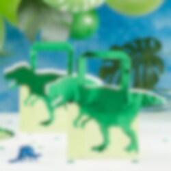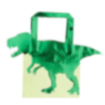 5 stk. lysegrønne slikposer af papir med et motiv af en dinosaur, lavet i grønt folie. Fyld poserne med spændende gaver og overraskelser og giv dem ud til dine venner under festen. Poserne er ca. 20 x 15 cm.