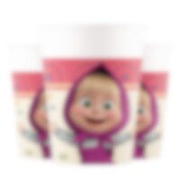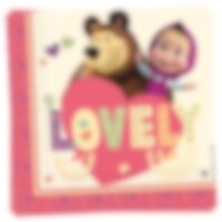 4 slikposer af papir med et sødt motiv af Masha foran et stort hjerte, dekoreret med små hjerter, regnbuer og farverige detaljer. Perfekte at fylde med slik, småt legetøj eller sjove overraskelser, som børnene kan tage med sig hjem fra børnefødselsdagen.