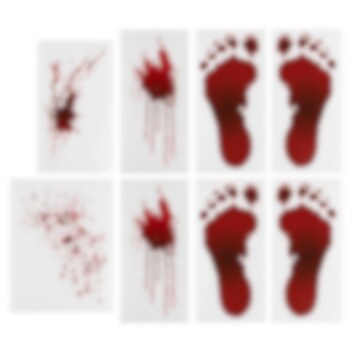 8 stk. klistermærker med blodige fodspor og blodstænk til at sætte på gulvet eller vinduerne for at skabe en uhyggelig stemning til Halloween. Hver pakke indeholder: 4 stk. blodige fodspor og 4 stk. blodstænk i forskellige former. Fodsporene er 22 cm lange og blodsprøjtet er omkring 19 cm lange. Emballagen er genanvendelig og FSC-certificeret.