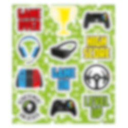 12 stk. klistermærker med forskellige spilmotiver. En sjov ting at lægge i slikposen når det er tid til fest med spiltema.