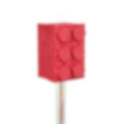 Flot piñata formet som en rød byggeklods – perfekt til festen! Piñataen har bånd, der hænger under den, og børnene trækker i båndene for at åbne den. Ét af båndene gør, at piñataen åbner sig, og indholdet falder ud.