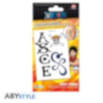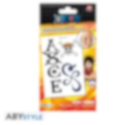 Til alle de eventyrlystne fans af "One Piece" kommer her et sæt med tre tatoveringer med dine yndlingsfigurer fra serien. Disse midlertidige tatoveringer er perfekte til at vise din kærlighed til serien, uanset om det er til en fest, en sammenkomst med venner eller bare for sjov.