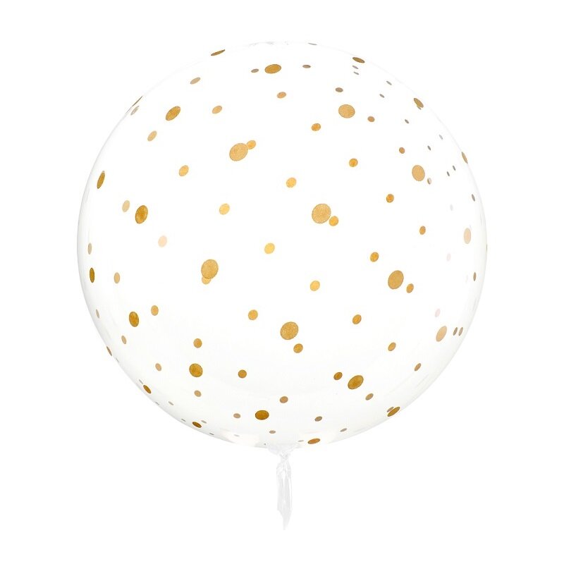 Rund transparent ballon med guldprikker 60 cm
