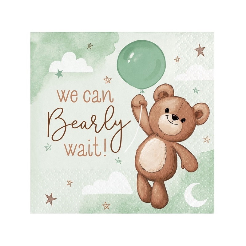 Teddybjørn Babyshower - Servietter, 25 cm 16 stk