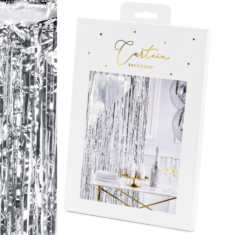 Folieret forhæng i en vidunderlig og skinnende sølv. En elegant dekoration til at hænge i en døråbning eller på væggen til festen eller babyshoweren. Forhænget er ca. 90 x 250 cm stort. Bemærk, at tape eller lignende til fastgørelse af dekorationen ikke er inkluderet.