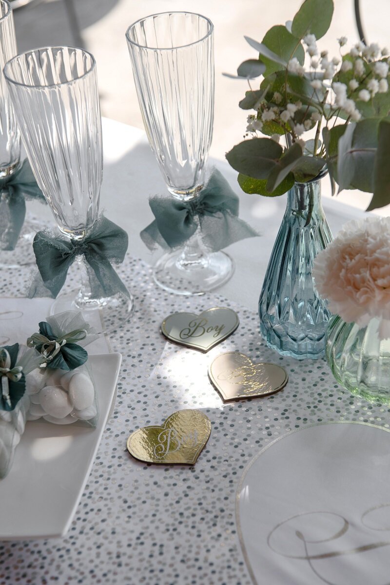 Hjerteformet konfetti i træ med ordet "Boy". Fine til at pynte bordet med til babyshower festen. Konfettien er 6 x 5 cm stor og i alt er der 10 stk i en pakke.