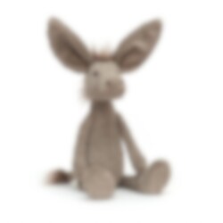 Et sjovt æsel med glat grå pels, der spreder manke- og halestøv og som ser ekstra sjov ud med sine ekstra store, bløde ører. Denne krammelige ven kan lide at tage stille pauser fra arbejdet for at lytte til alle landets lyde. Fremstillet af polyester og kan håndvaskes og hænges eller fladtørres efter behov.