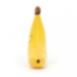 En sjov og fløjlsblød banan med et glad ansigt. En kælen hyggekammerat og en perfekt ledsager til børn, der kan lide frugt. Bananen kan også bruges, når man spiller butik, køkken eller lignende. Lavet af 95% polyester, 5% spandex og håndvaskes efter behov.
