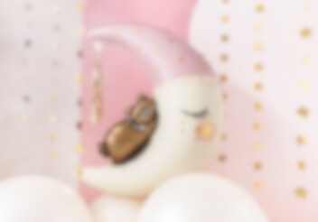 Dekorativ folieballon, der forestiller en halvmåne med en sovende bamse, der med garanti vil blive værdsat ved din Babyshower-fest. Ballonen er 80 x 98 cm oppustet og pustes op med helium eller luft.