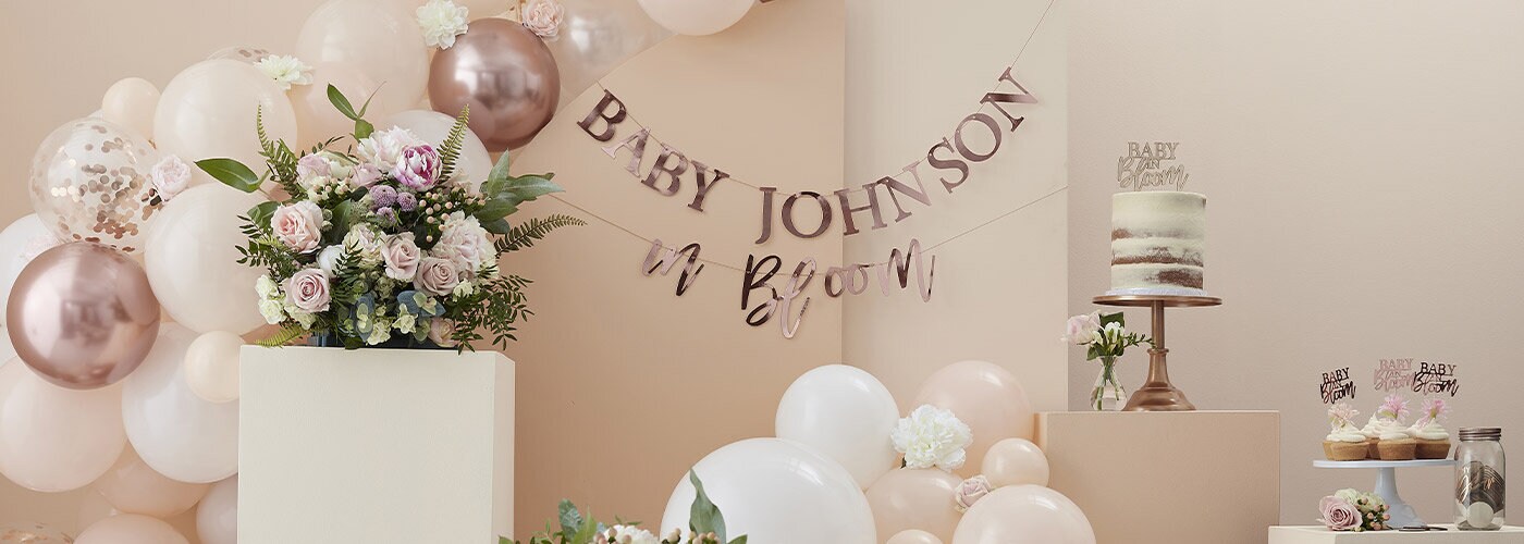 Overrask den kommende moren med en Baby in Bloom Babyshower! Dette smukke temaet består blandt andet af borddækningstilbehør med motiver af smukke blomster og detaljer i rosaguld, der skaber en varm og lidt luksuriøs følelse. Og ved du hvad? Temaet er også fyldt med smarte dekorationer, balloner og andet sjovt tilbehør til babyshoweren.