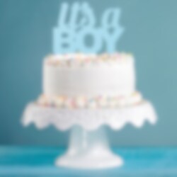 Glitrende kagedekoration med motiv af teksten "it's a BOY". En passende dekoration at have på kagen til babyshoweret. Dekorationen er lavet af plastic og er cirka 20 x 18 cm stor.