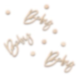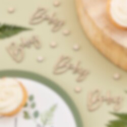 Emballage med konfetti i træmateriale fra temaet Botanical Baby. Dekorer bordet med dette, når det er tid til babyshower eller dåbsfest. Pakken indeholder ca. 14 gram.