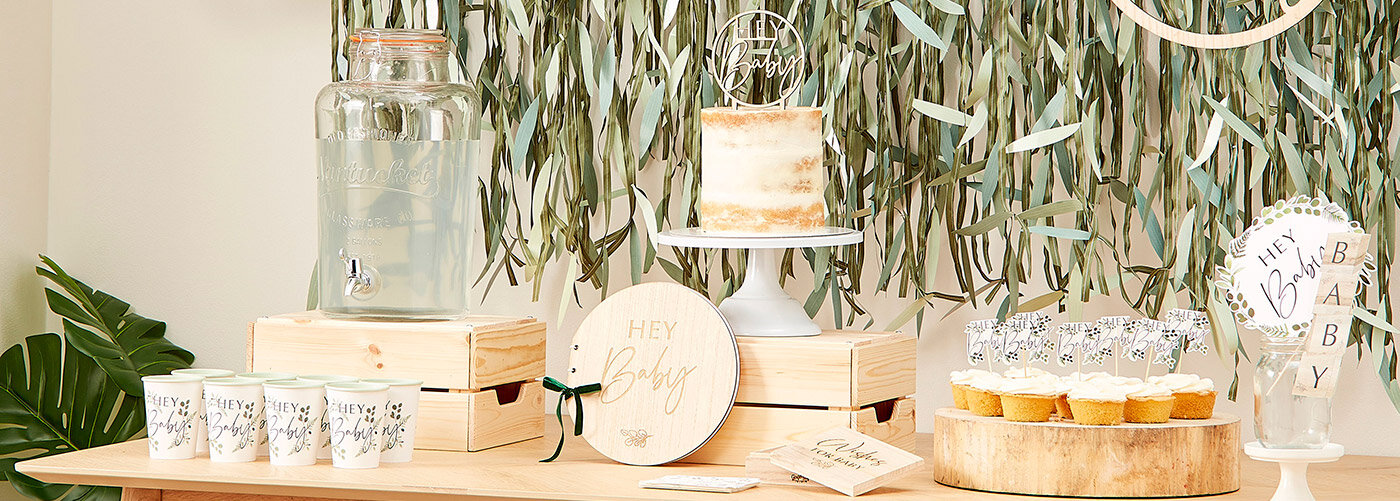 Velkommen til Botanical Baby Babyshower. Her finder du alt, hvad du kan få brug for til en mindeværdig babyshower. Botanical Baby består blandt andet af smukke detaljer i træ og tallerkner, krus og servietter med motiver af kviste og blade. Der er også guirlander af efeu eller eukalyptus, der er perfekte, når du vil skabe en hyggelig atmosfære, der leder tankerne hen på naturen. Vi har selvfølgelig også fyldt temaet med balloner, backdrops og andre sjove tilbehør til babyshoweren.