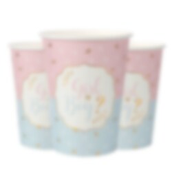 10 flotte papkrus i blå og pink med teksten Girl or Boy? og andre smarte detaljer i guldfolie. Sødt at have med, når det er tid til en kønsafsløringsfest. Passer godt sammen med andre produkter fra samme tema. Krusene er ca. 9,7 cm høje og har et rumindhold på 270 ml.