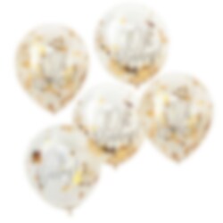 5 stk. flotte balloner fyldt med guldkonfetti og med teksten Oh Baby udenpå. En rigtig fin dekoration til dit Babyshower. Ballonerne bliver ca. 25 cm i diameter når den er oppustet.
