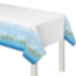 Smuk borddug af plastik i blå nuancer med elementer af hvid og guld og med motiv af teksten "Oh Baby!" samt hjerter og stjerner. Et utrolig imponerende tilbehør til borddækningen til babyshoweren. Dugen er ca. 137 x 259 cm stor.