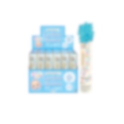 Konfettikanonen er fyldt med blå konfetti. Et sjovt tilbehør at have med til sit babyshower når man vil afsløre barnets køn.