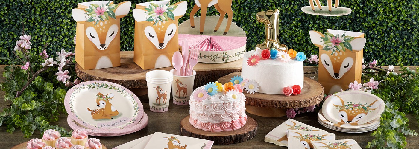 Og det bedste af det hele er, at der er mange matchende tilbehør til temaet. Vælg blandt tallerkener, kopper og servietter med bedårende rådyrmotiv. Glem ikke at inkludere den smukke borddug, der giver et ekstra touch af elegance til 1-års fødselsdagen.