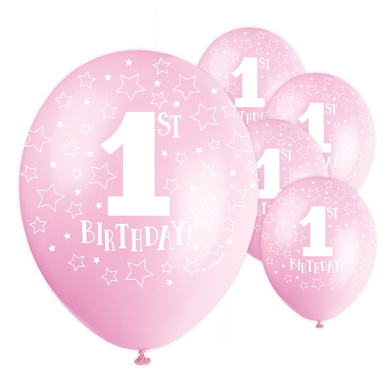 Balloner, 1 år 5 stk. lyserød