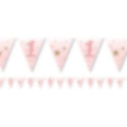 Sød papir-flagguirlande med flot 1 års motiv. En sjov dekoration til 1-årsfesten. Flagguirlanden er ca. 3,7 m lang.