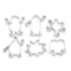 6 stk. kageforme, som er formet som figurerne fra børneserien Babblarna. Brug disse til at bage fine kager til børnefesten med Babblarna som tema. Kageformerne er lavet af stål.