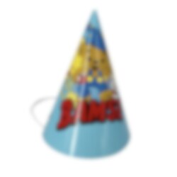 8 stk. festhatte med sjove Bamse-motiver til børnefødselsdagen. Festhattene er cirka 19 cm høje og holdes på plads af et elastikbånd.