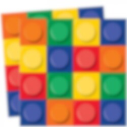 16 stk. servietter med flott motiver af farverige byggeklodser. Nyttige at have ved bordet om man vill tørre sig sina fingrer. Servietterne er 2-lags, ca 33 x 33 cm.
